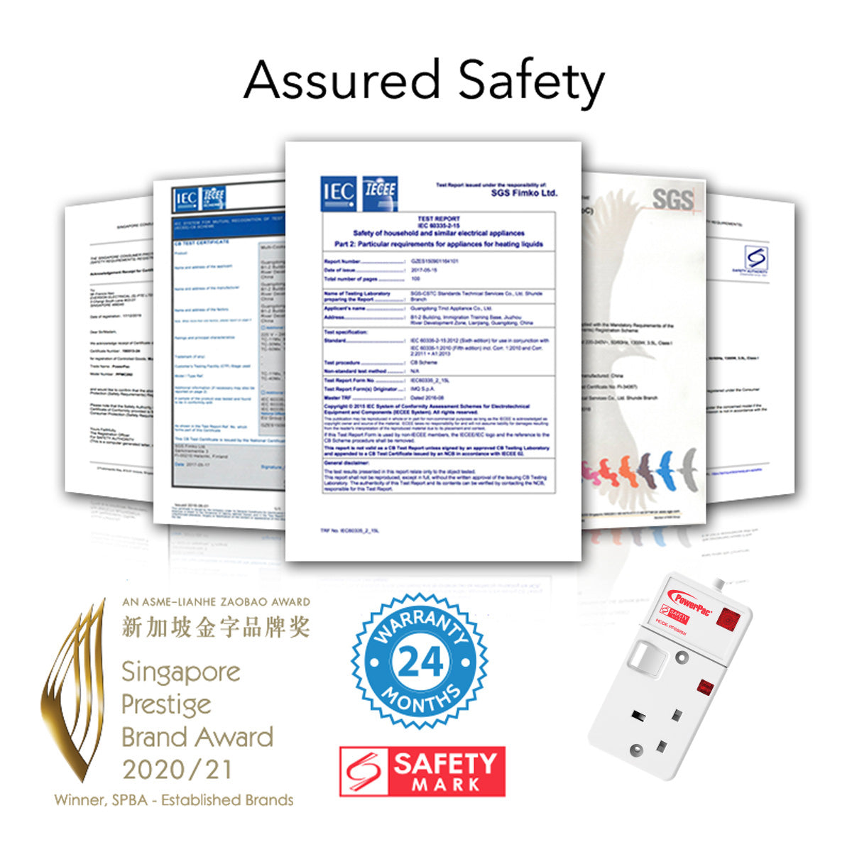 2 important safety features: Safety Shutters prevent children from tampering with the device. All materials are Fire-retardant.