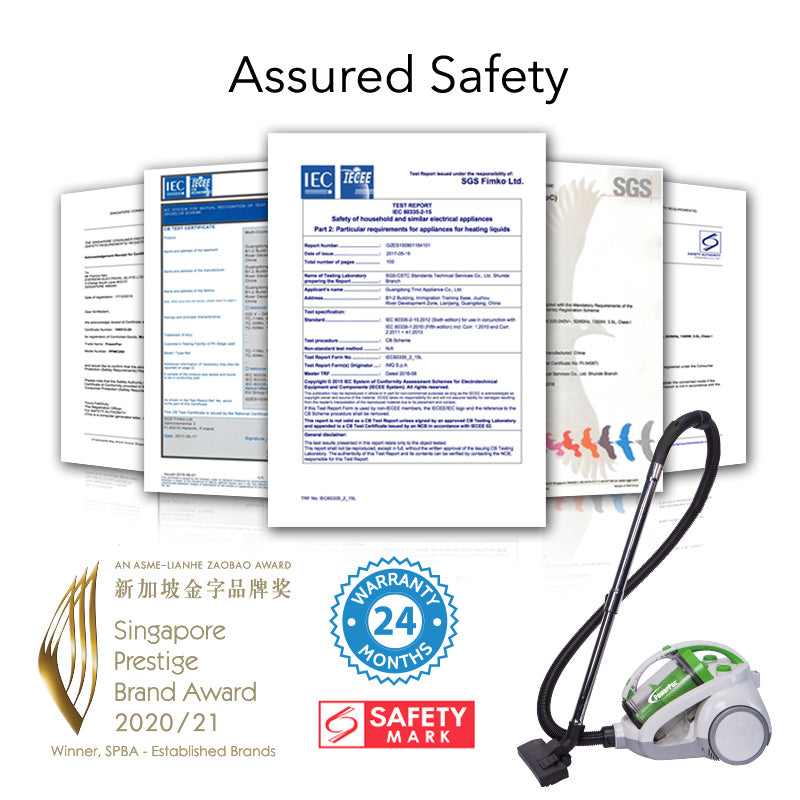 ThePowerPac Bagless Vacuum, Cyclone Vacuum with HEPA Filter 2000 Watts PPV2000is a larger, more powerful version of the PPV1400. The main machine is 41 cm long and stands at 32 cm high (without the Hose attachment). The extension telescopic tubes are made of stainless steel to provide greater strength in the component. Dust is suctioned by a more powerful 2000 Watt Cyclone Turbineand collected in the large 2.5 litre transparent Dust Container. Best of all, it does not require vacuum bags.