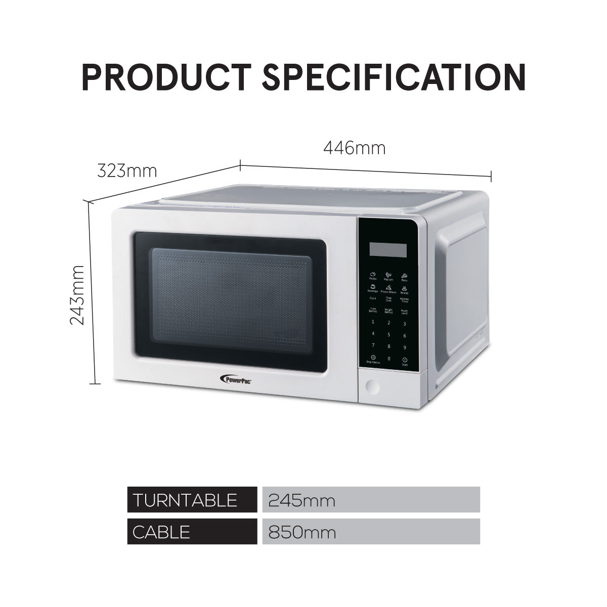 The PowerPac 20L Digital Microwave Oven PPT766 is a user-friendly microwave oven that is extremely simple to use. Most of us use a microwave to heat up food left in the fridge, which should take around 20 seconds to microwave, and don't want to be standing in front of the microwave for 2 minutes pressing keys while the oven refuses to work.
