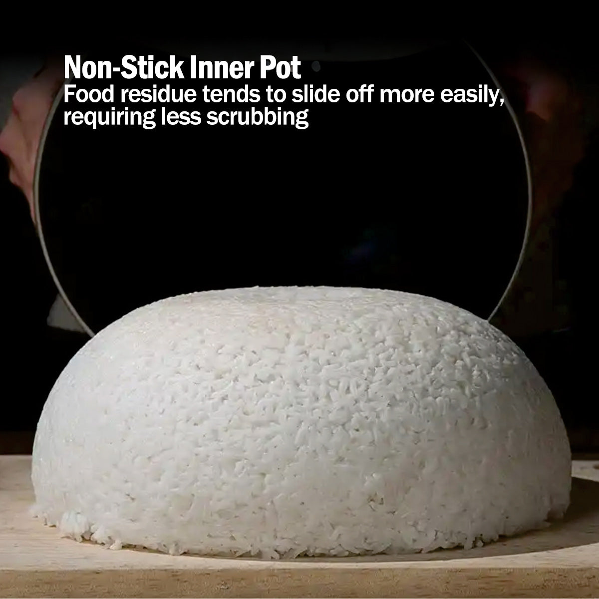Food tastes healthier and even more delicious, and cooks faster to save you time and energy. Rubberised, heat-resistant handle ensures you won't burn yourself, and functions include: Automatic Pressure-adjust, Auto Keep Warm and Pre-set Timing of Cooking Programs. All accessible on a large digital display screen. The large capacity, Non-stick coated steel inner pot is easy to clean.