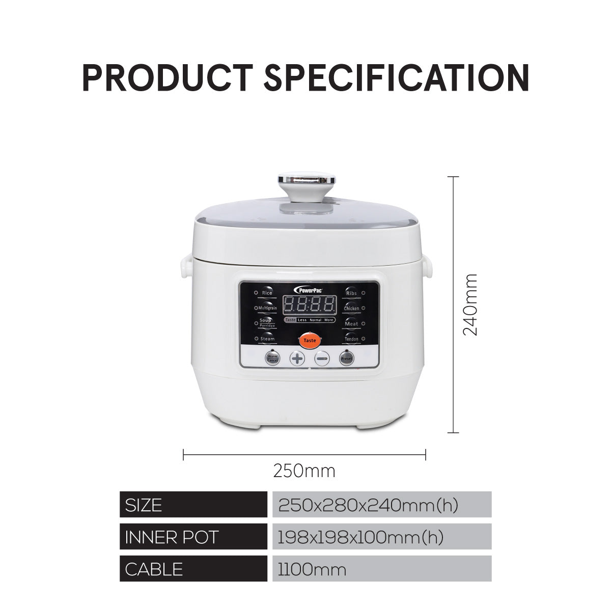 This newly introduced PowerPac 2.5L Digital Pressure Cooker PPC295 will help you cook the foods you like in a consistent and convenient manner; and food is also hygienically prepared.