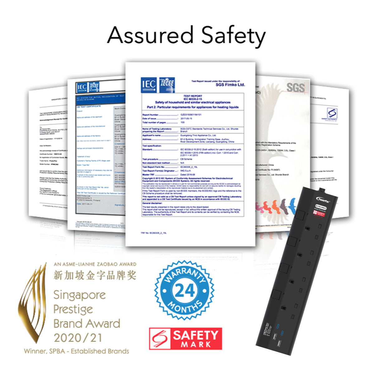 3 important safety features: Built-in Surge Protector safeguards electronic devices such as your TV system or computer from high-voltage power surges; while Safety Shutter prevents children from tampering with the device. All materials are Fire-retardant.