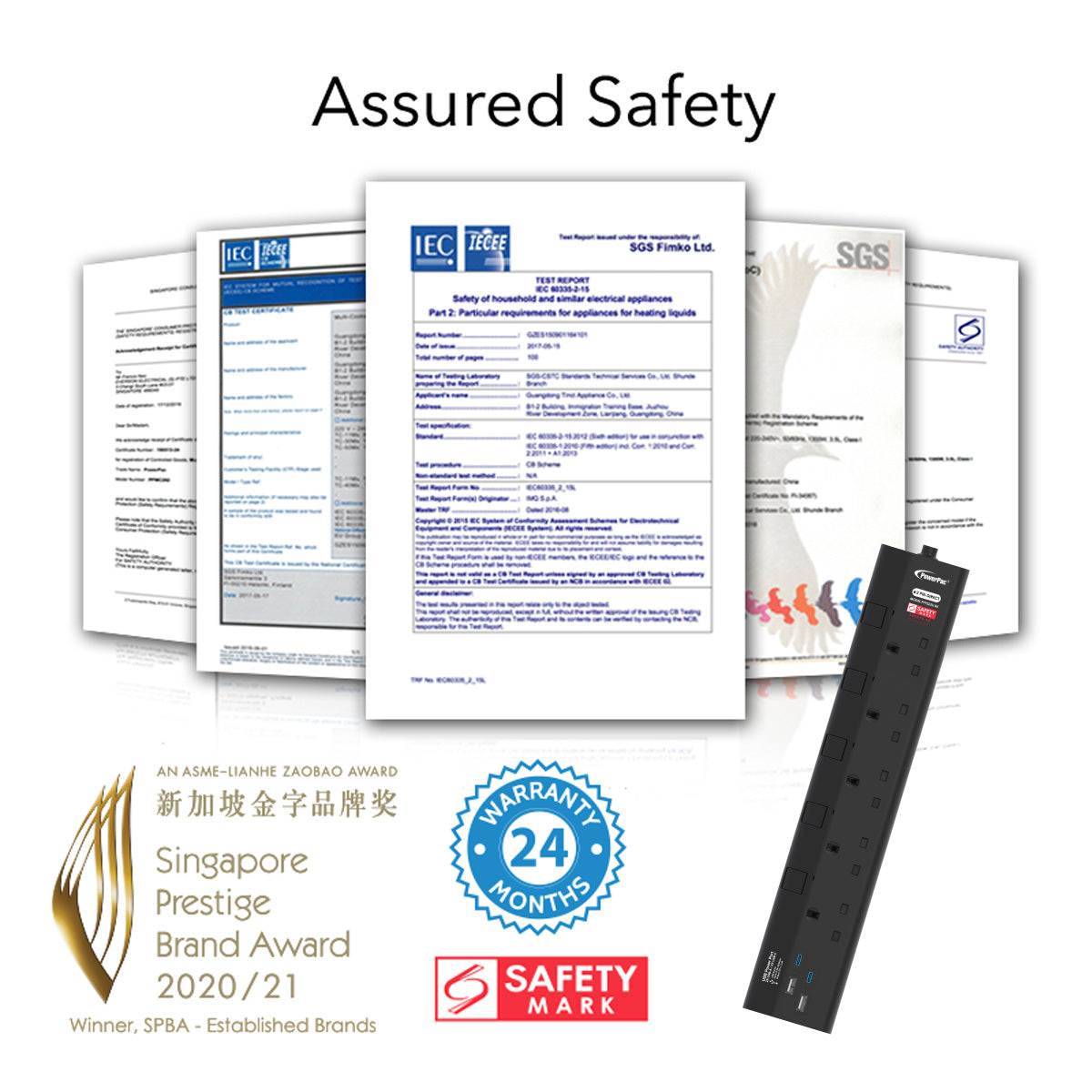 3 important safety features: Built-in Surge Protector safeguards electronic devices such as your TV system or computer from high-voltage power surges; while Safety Shutter prevents children from tampering with the device. All materials are Fire-retardant.