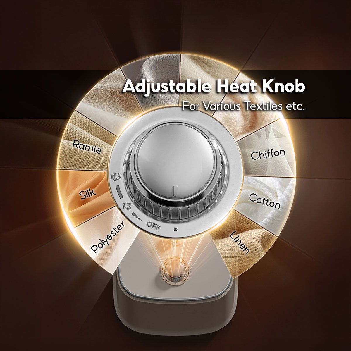 - Adjustable heat knob for various textiles & delicate fabrics, curtains, drapes, upholstery etc