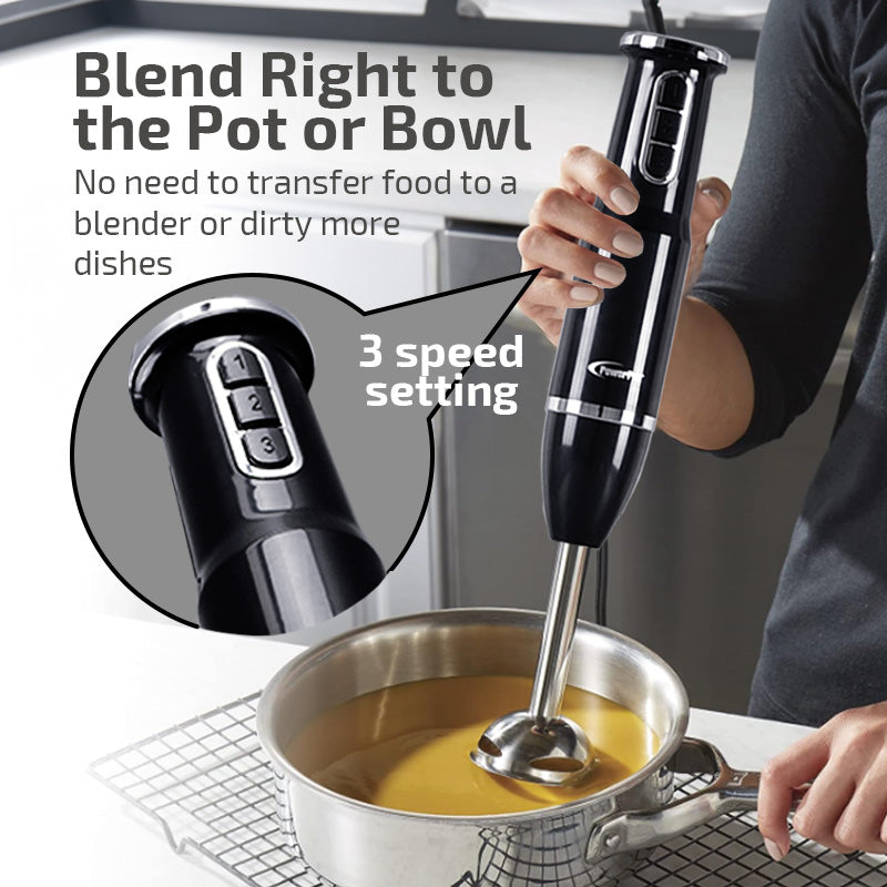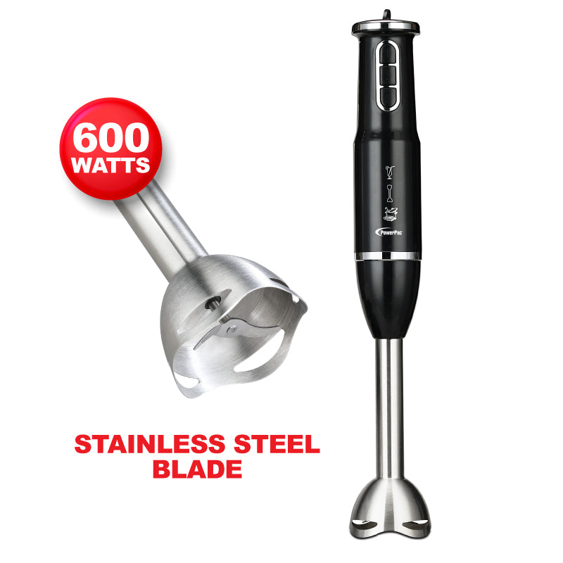 The PowerPac Hand Blender Food Preparation with Stainless Steel Blade 600W PPBL191 is an energy efficient, safe and easy-to-use kitchen appliance essential for a minimalist, modern kitchen and will make cooking and baking a pleasure for everyone in the family