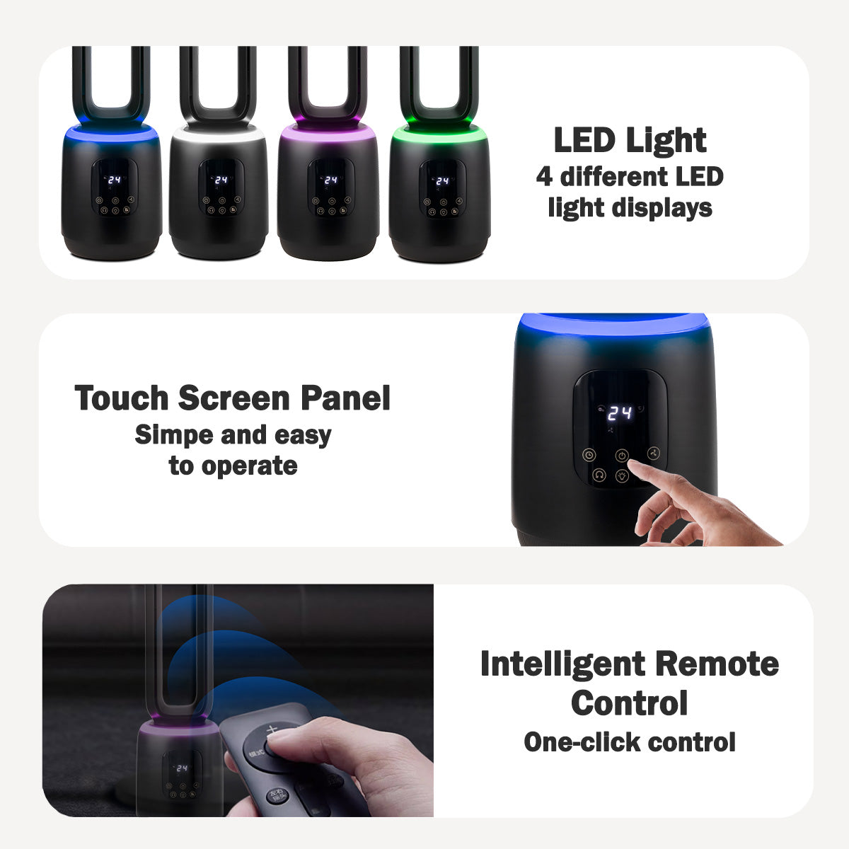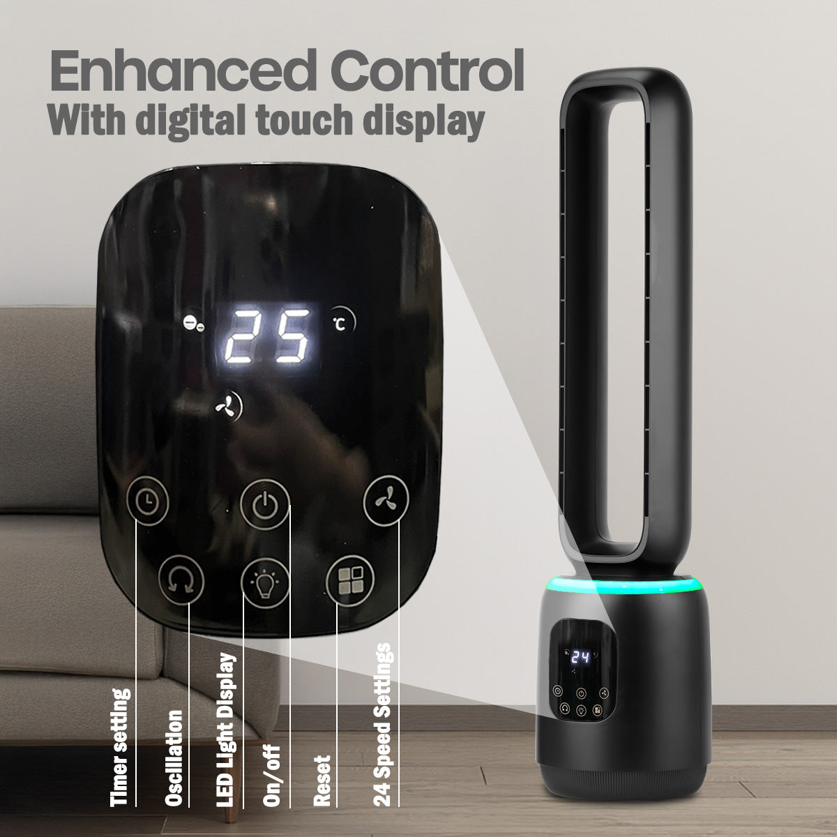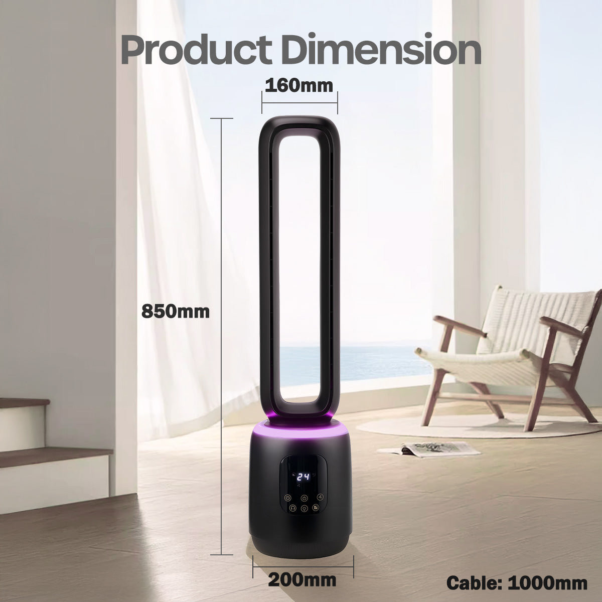 [NEA CLIMATE VOUCHER $400] iFan DC Bladeless Tower Fan – Remote Control, Oscillation, Timer, LED Lamp, Touch-screen, 3 Modes, 24-Speed, black, IF7463