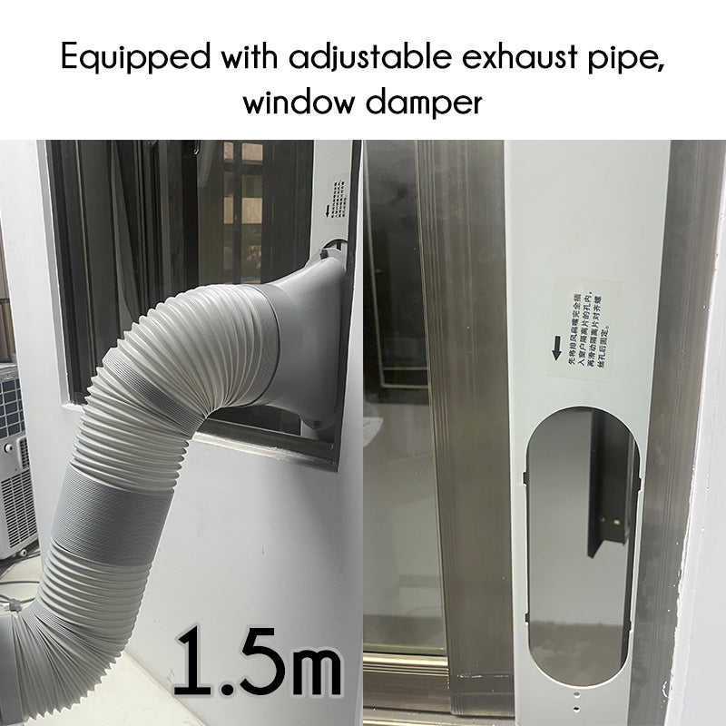 - 1.5 m exhaust hose, window slide bar, and remote control included