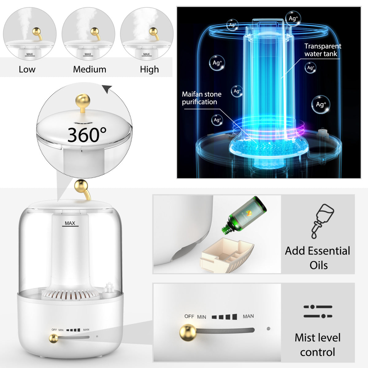 - Adiustable mist level