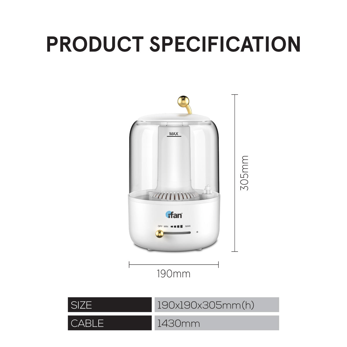- Product size : 190x190x305mm(h)