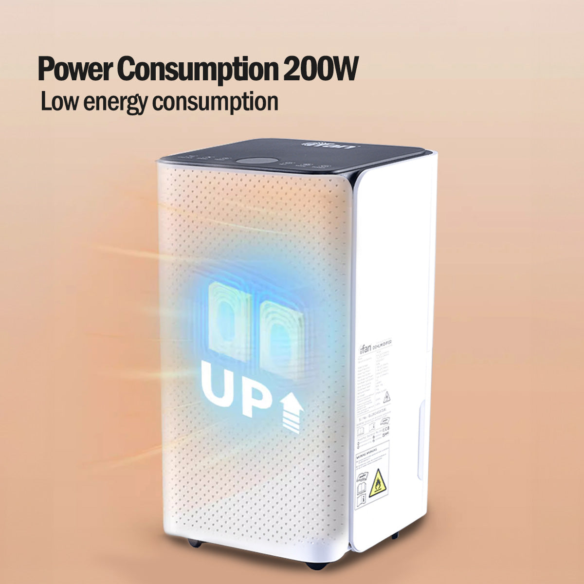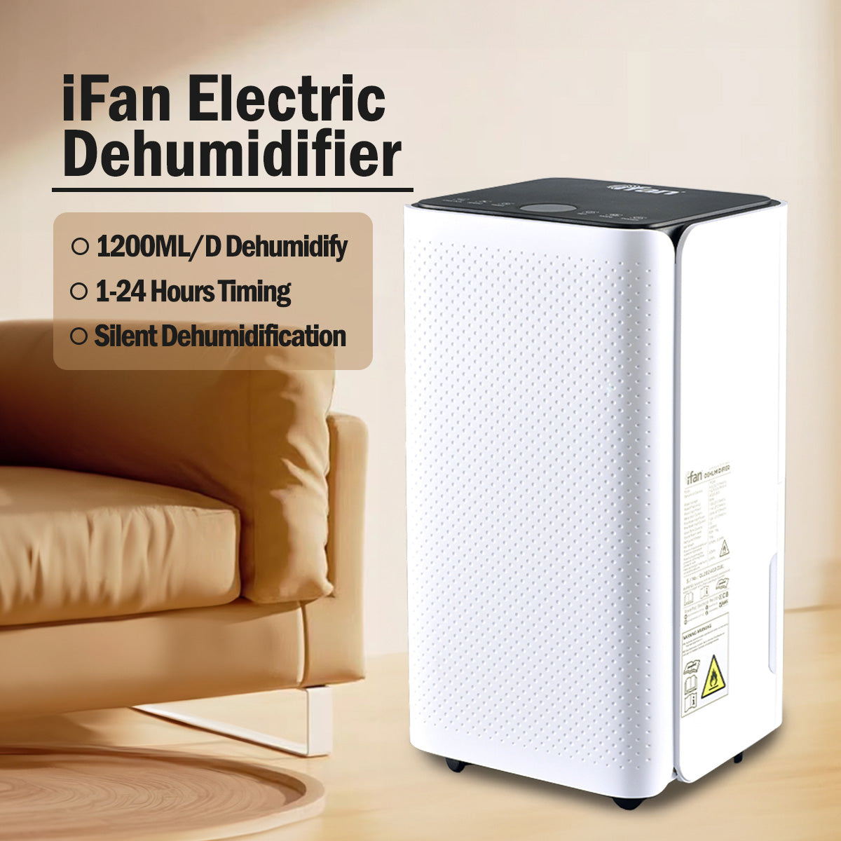 iFan 1.2L Electric Dehumidifier Thirsty Hippo – Full Tank Auto OFF, Humidity Display, 3 Modes, Ioniser, Air Filter, Timer, white, IF3256