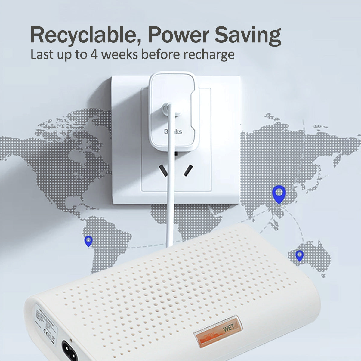 - Plug in to dry & reuse