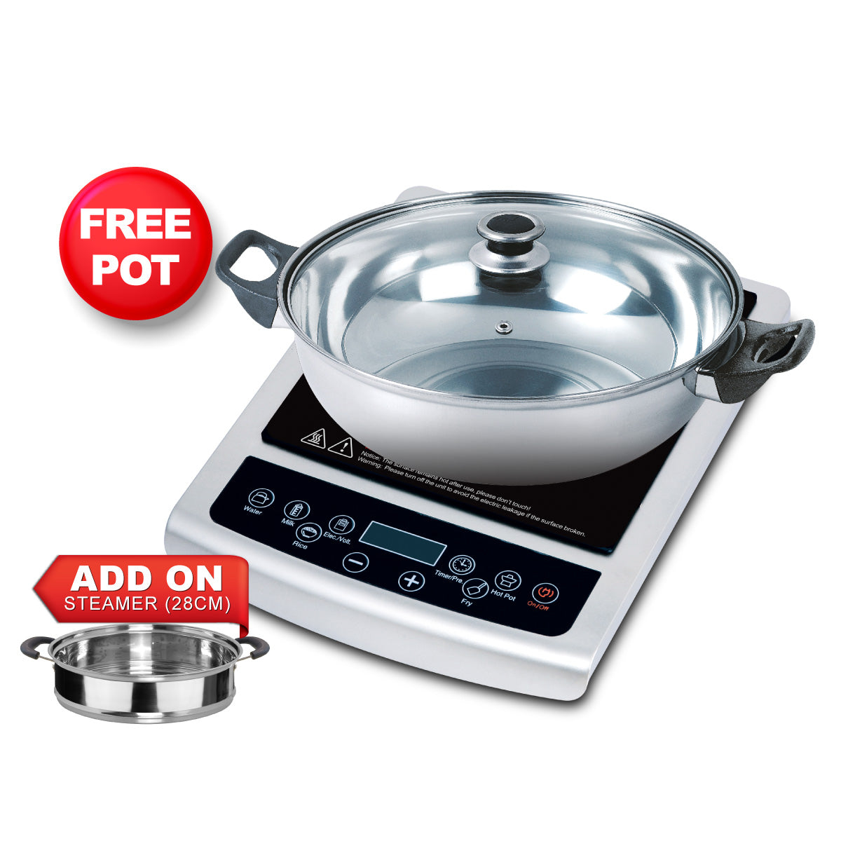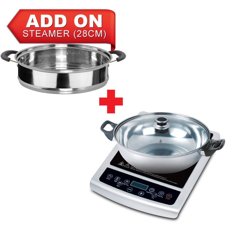 Induction Cooker Steamboat with Stainless Steel Pot + Stainless Steel Steamer (PPIC848+ Steamer)