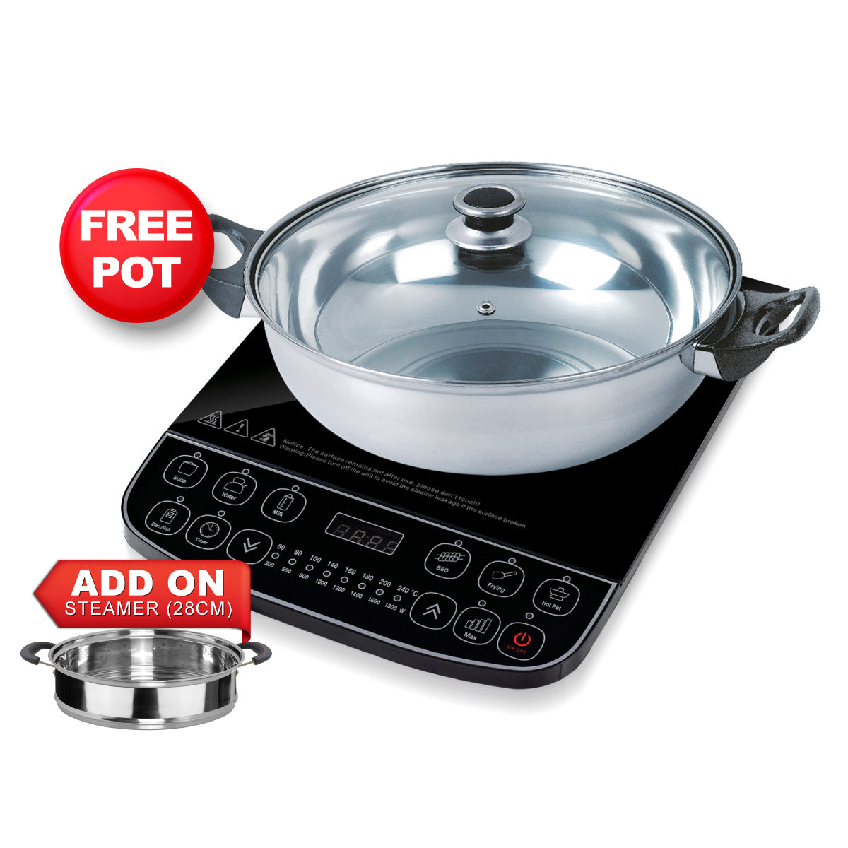 Induction Cooker Steamboat with Stainless Steel Pot + Stainless Steel Steamer (PPIC887+Steamer)