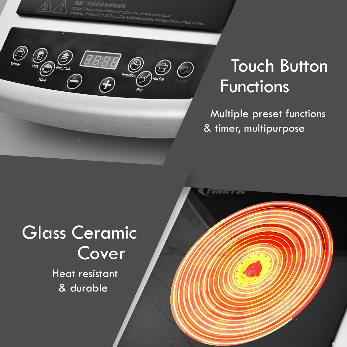 The PowerPac Induction Cooker PPIC848 consists of copper coils beneath a ceramic Crystal Plate. When electricity runs through the copper coils, it "induces" (or causes) an electric current to flow in a utensil (pot/pan) containing a magnetic material such as stainless steel placed on the Crystal Plate. As the utensil resists this current, heat is generated very quickly and evenly throughout the utensil, cooking the food inside evenly; similar to the use of a hot flame or electric hot plate.