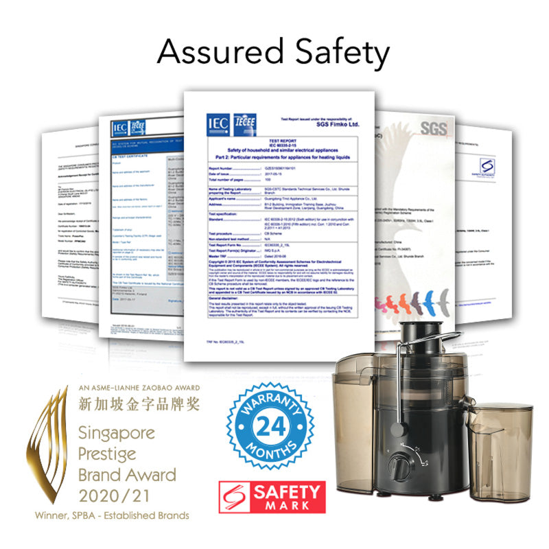 The PowerPac Juice Extractor PP3403A extracts juice quickly and efficiently. With a dedicated design fitted with a large Loading Tube, use of high quality materials such as food-grade Stainless Steel Filter mesh & blade and outstanding functions like a 2-speed gear and a skid-resistant base which holds steady during operations, you will be making delicious and nutritious fruit juices for yourself and your loved ones for years to come.