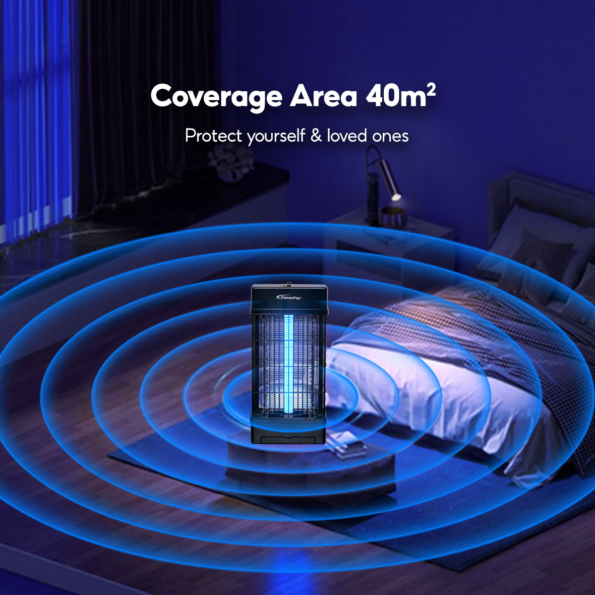 This appliance covers an area 40 square metres, which is ideal for most households. The UV-light tubes are completely harmless to humans and pets. It does not emit fumes, odour or harmful chemicals, unlike insecticide sprays, which can be deadly to pets and young children, or anyone allergic to the chemicals contained in it.