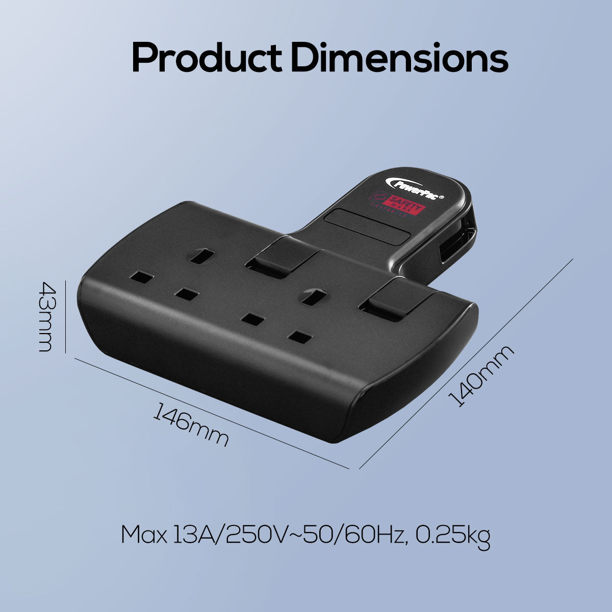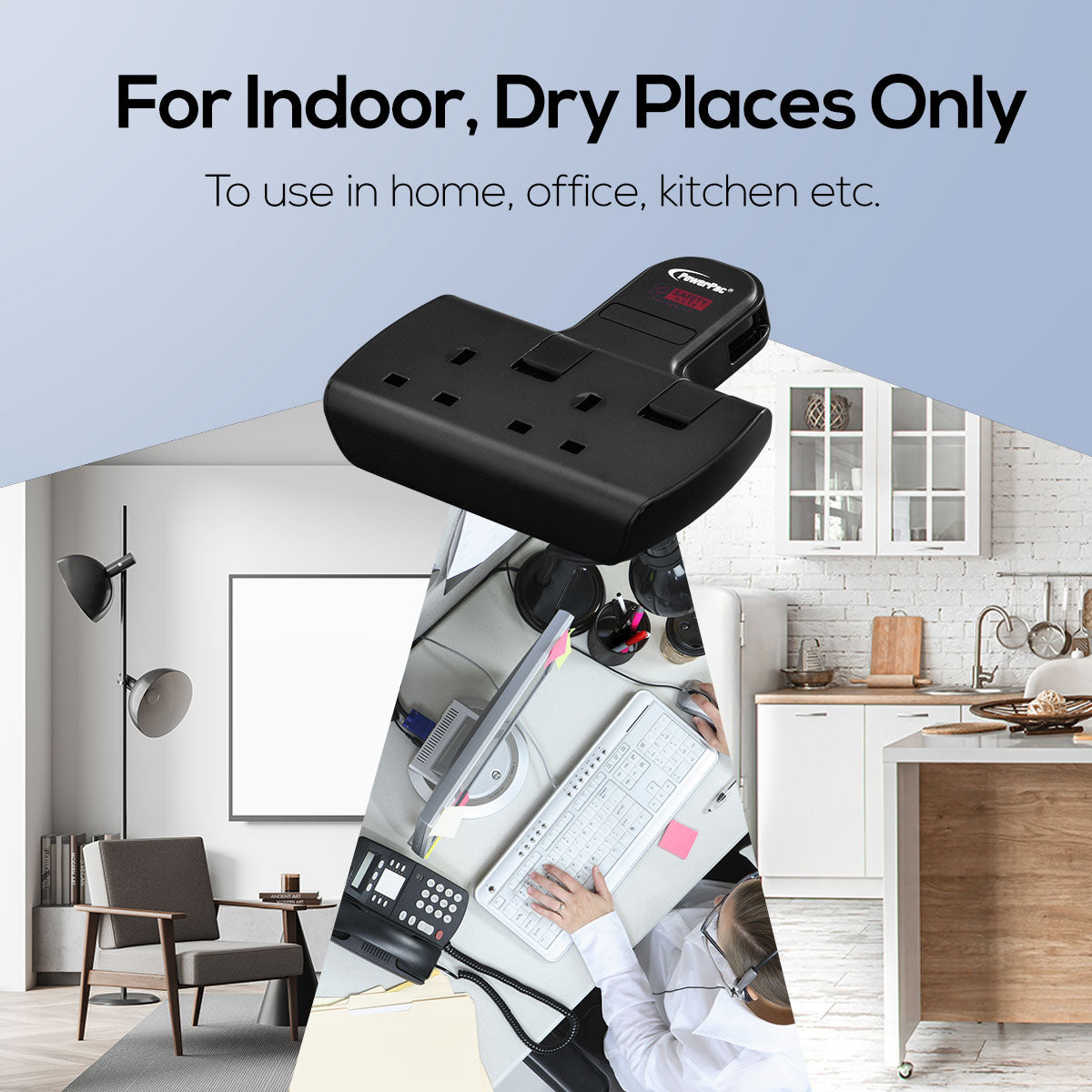 Multi Plug Extension Adapter with 2 Way adapter, 2 Way Socket Adaptor (PP272BK)