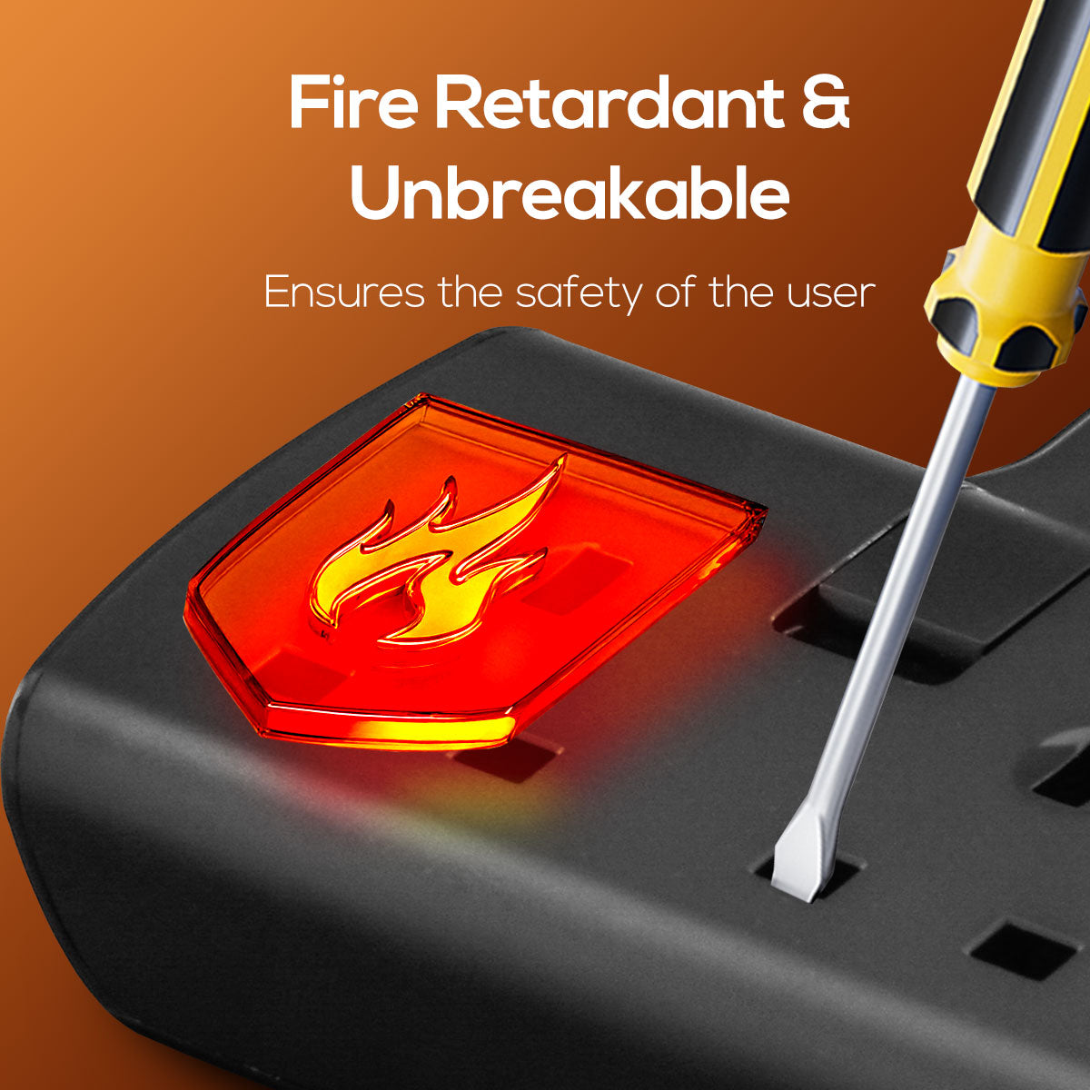 Important safety features includes: Safety Shutter which prevents children from tampering with the device. All materials are Fire-retardant.