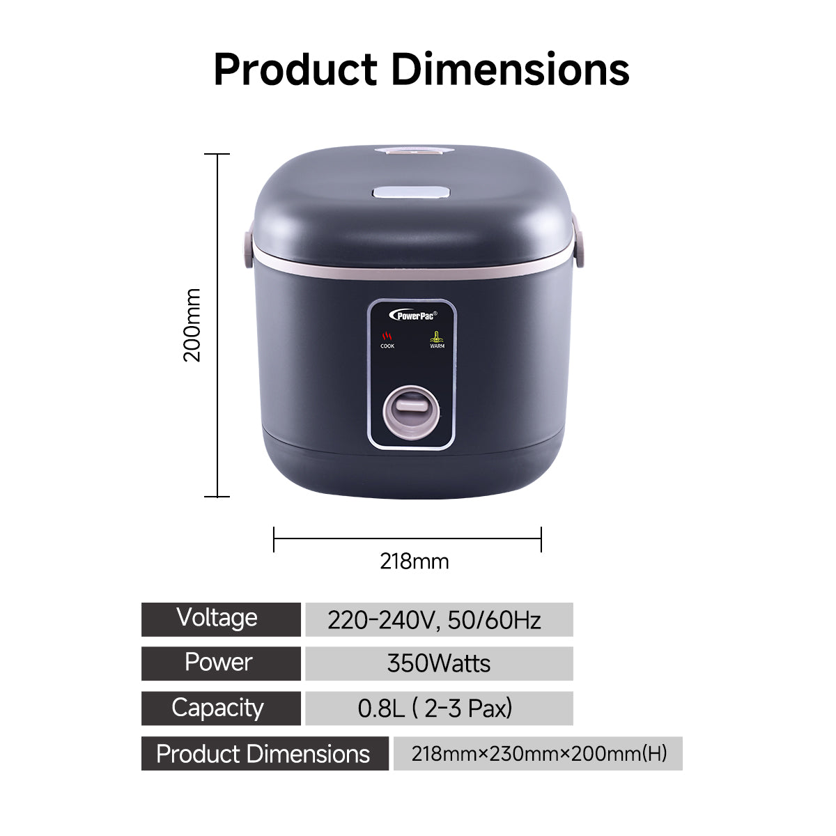 If you are looking for a Rice Cooker that works perfectly the way that it was manufactured to do, you would not be disappointed with the PowerPac 0.8L Rice Cooker with Non-Stick Inner Pot PPRC610. This device is sturdy, dependable, has an wear & amp; tear resistance which will not corrode, easy to operate, uses less electricity due to its high energy efficiency, is long-lasting and will provide pots of fragrant, fluffy rice for many years to come.
