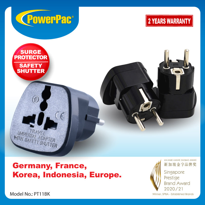 The PowerPac Multi Adapter with 2-Round-Pin European Plug PT11BK is designed for travellers who need a reliable, lightweight, and versatile adapter.