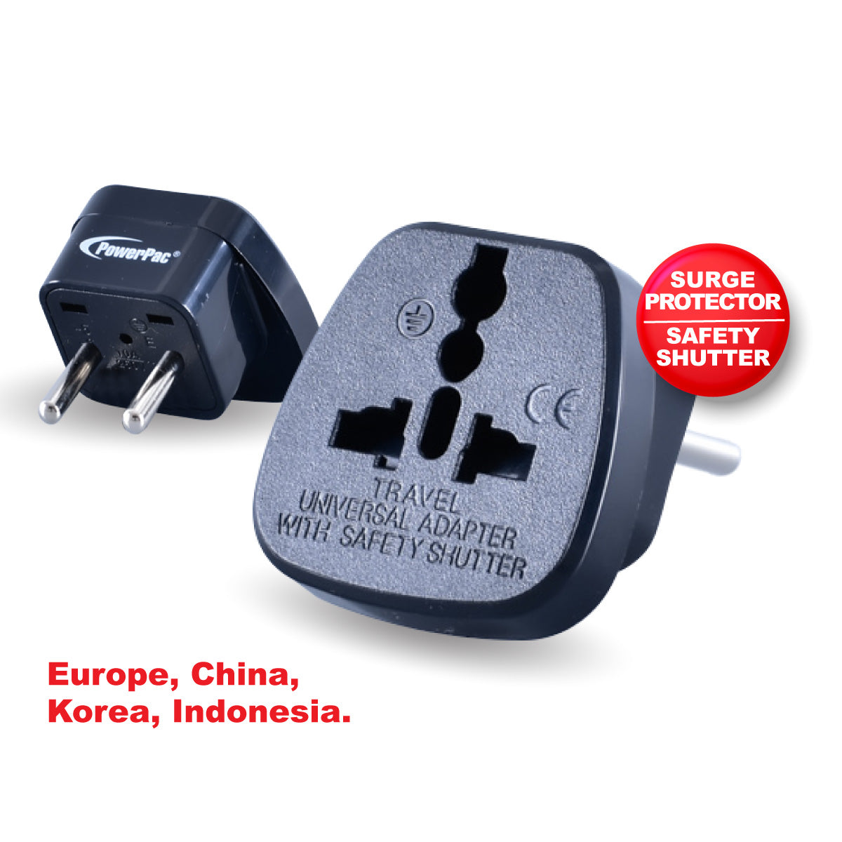 Multi Adapter with 10A Plug, Universal Travel Adapter, Europe, China, Indonesia, Korea (PT09BK)