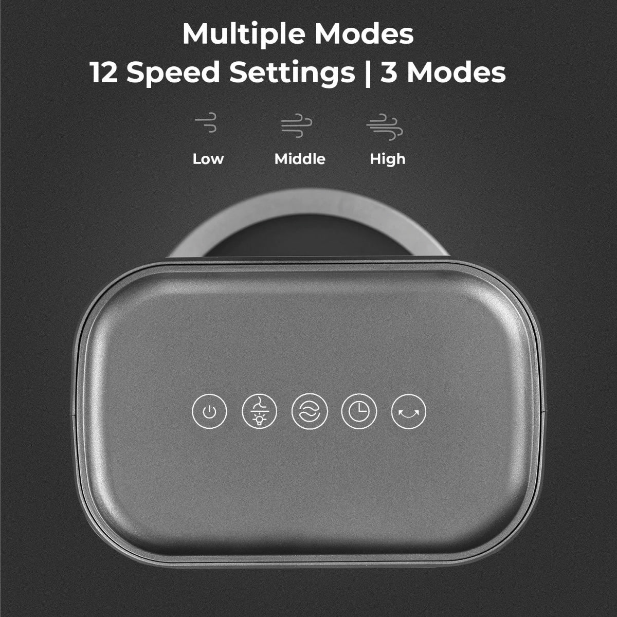- 3 wind modes, with 12 speed settings & 15 hour timer