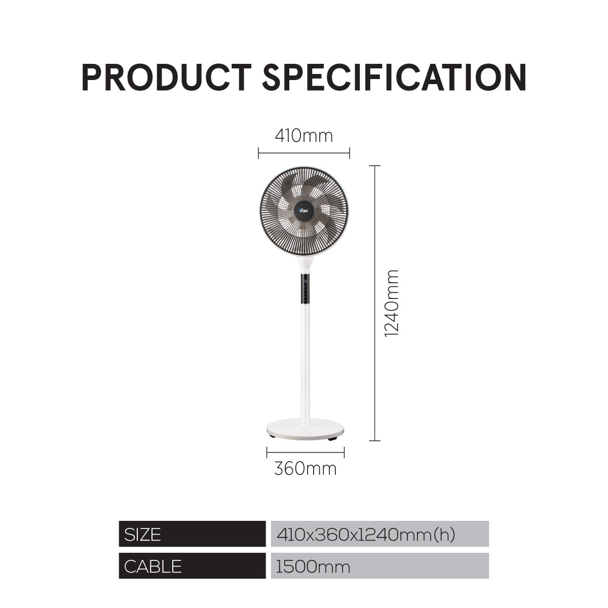 Featuring a multifunctional remote, 12-hour timer, and three adjustable heights (685 mm, 990 mm, 1240 mm), the IF7436 provides convenient, customizable cooling. Its energy-efficient 30 W DC motor ensures reliable performance while keeping electricity consumption low. The removable front cover makes cleaning quick and hassle-free.