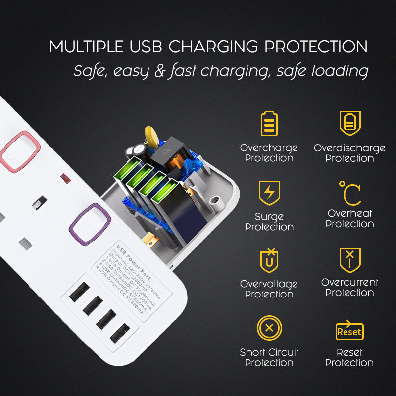 - With 4x USB charger & 2-pin direct plug