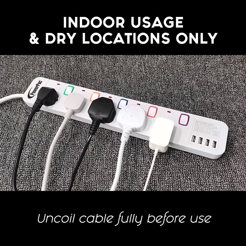 Power Extension Socket Extension Cord 6way 3 meter with 4x USB Charger (PP9116U)