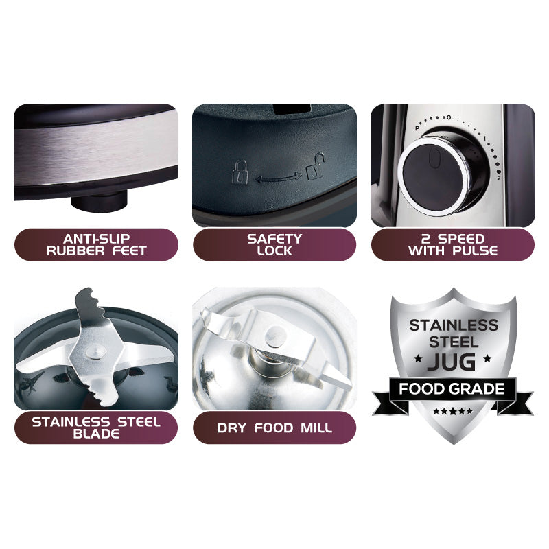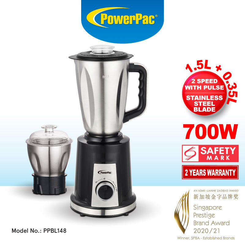 This PowerPac Professional High Power Blender 700W PPBL148 is a specialised Blender & Grinder. Not only does the PPBL148 blend fruits, liquids, yoghurt and ice-cream; but, with the high quality, robust and sophisticated Blender Blade assembly, frozen fruits, vegetables, meat and even ice can be blended effortlessly and fast, which a normal blender simply cannot handle.