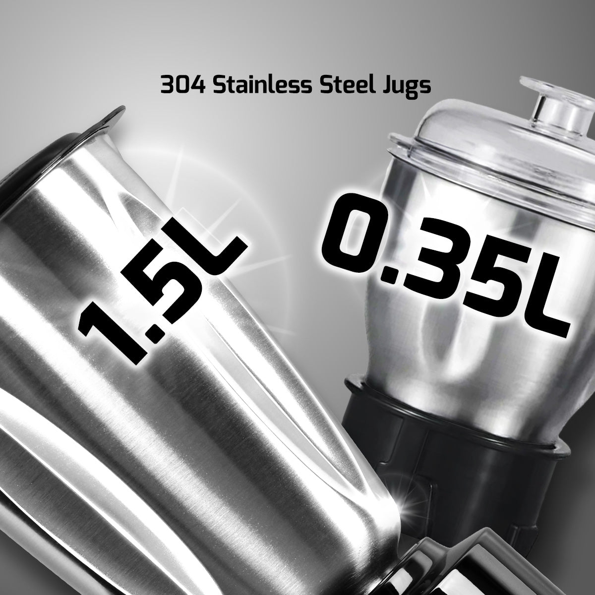 - Comes with a large 1.5L + 0.35L stainless steel jug