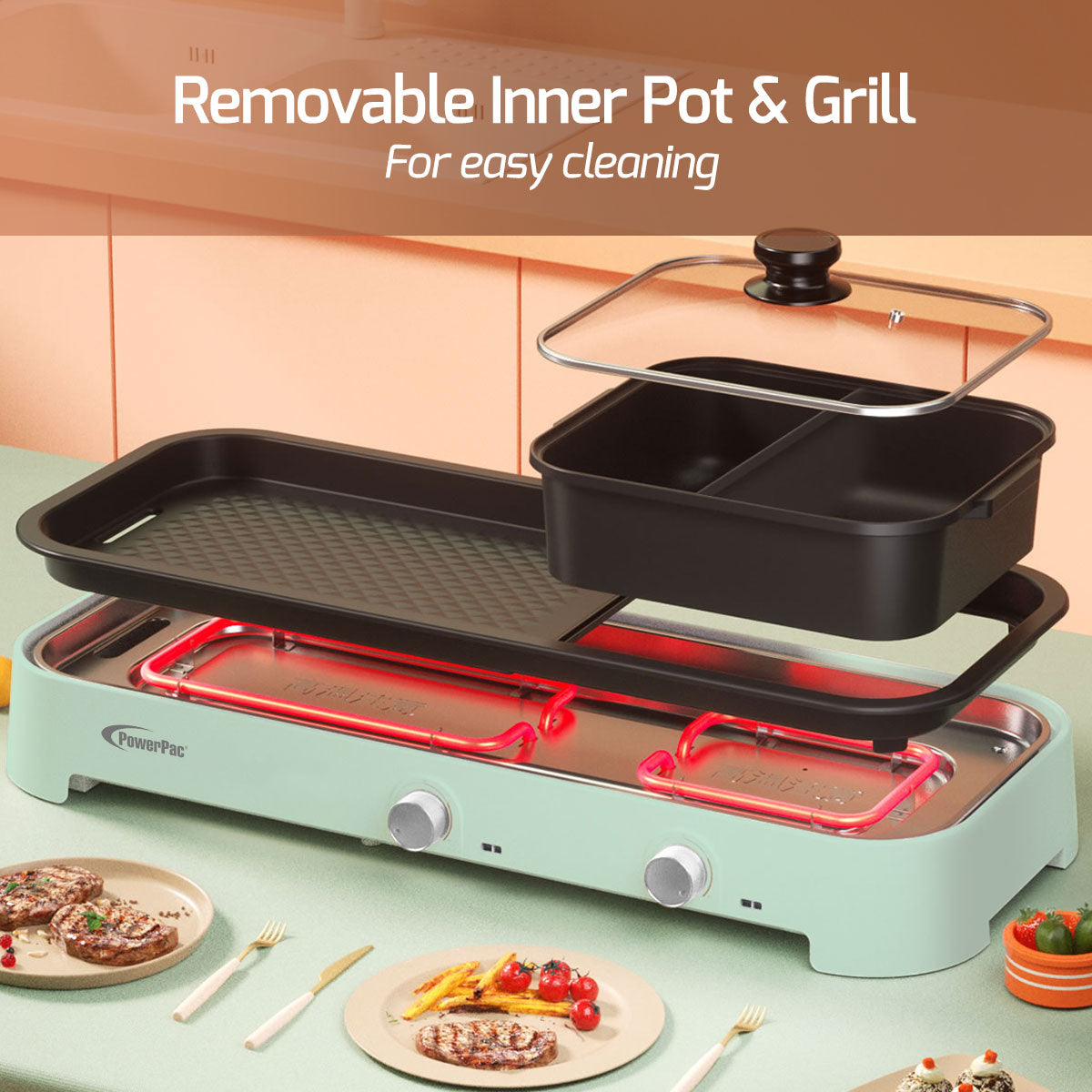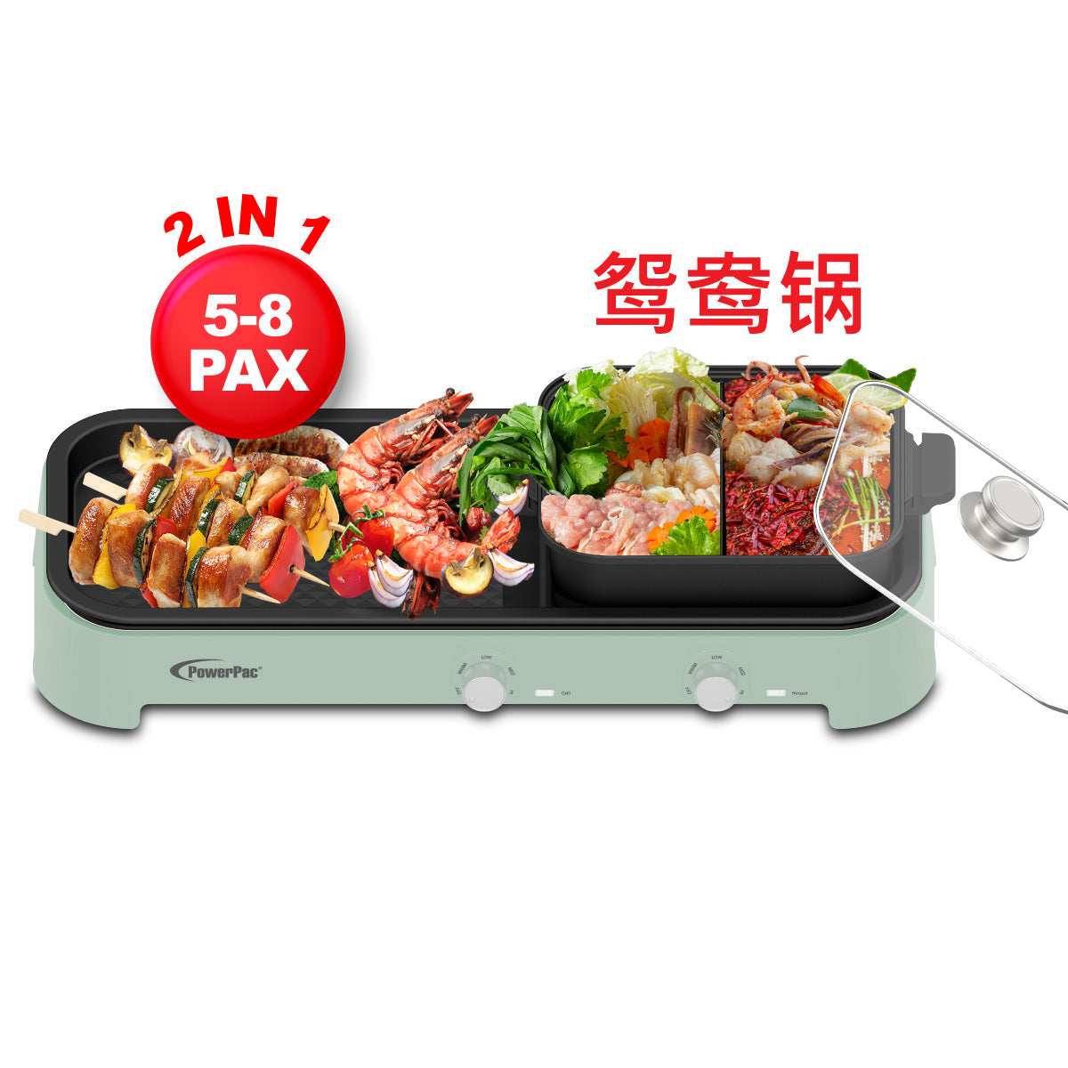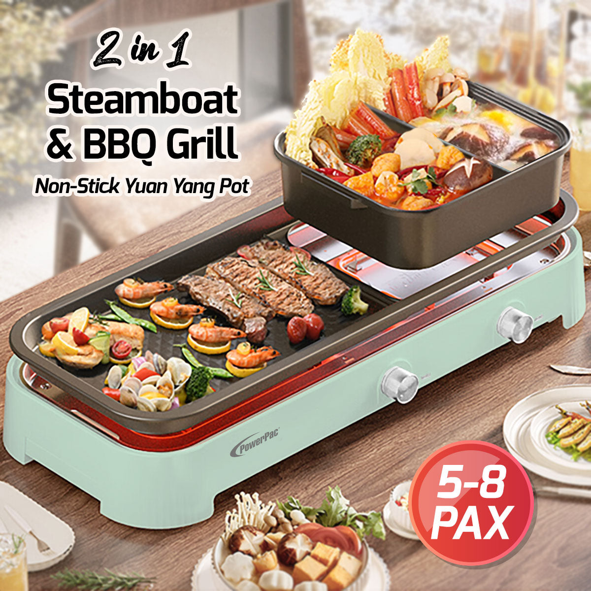 The PowerPac Steamboat with BBQ Grill, 2 in 1 Multi-Cooker YuanYang pot PPMC797 carries out the cooking functions of many appliances all within one versatile and time-saving tabletop electric appliance, freeing up your modern kitchen's already limited space.