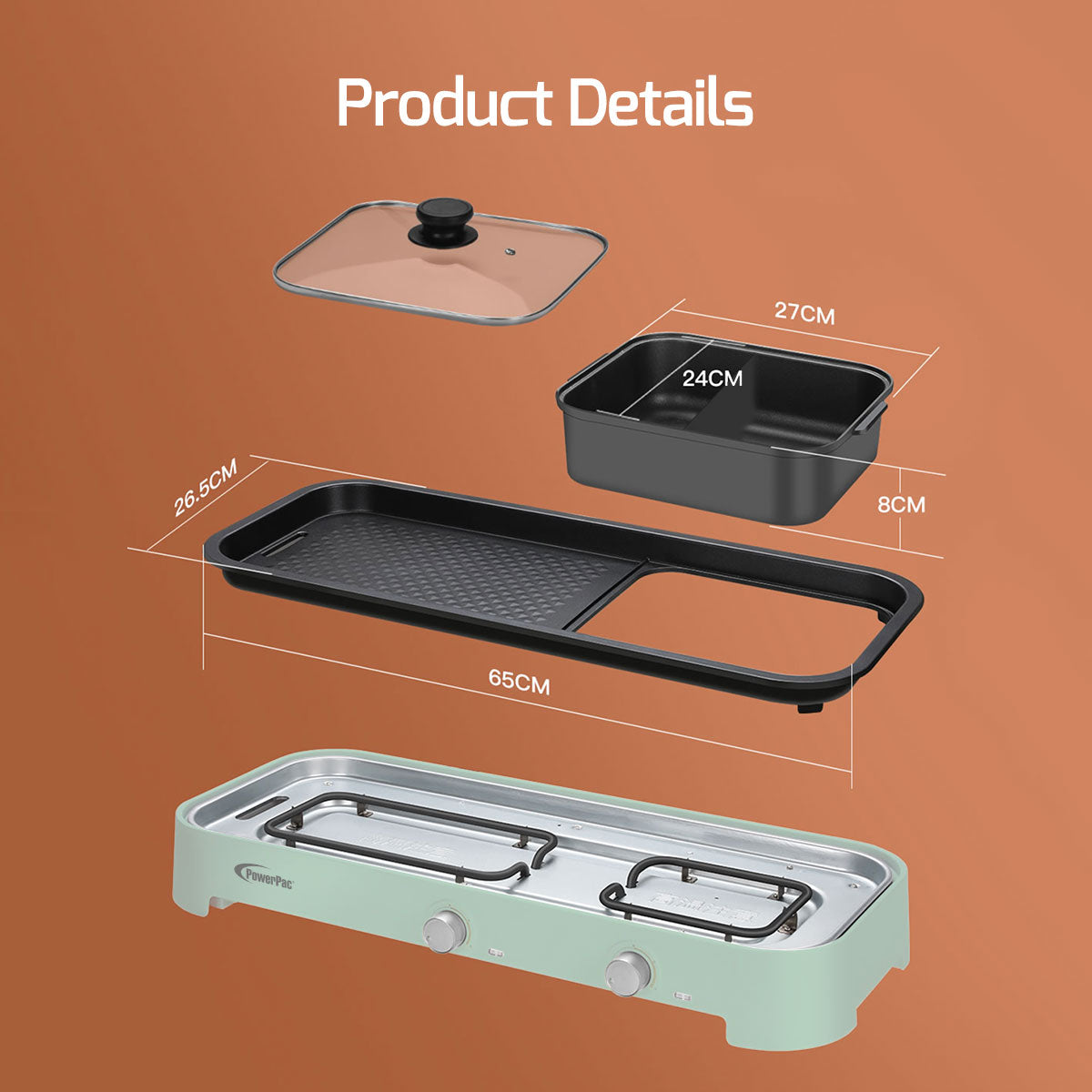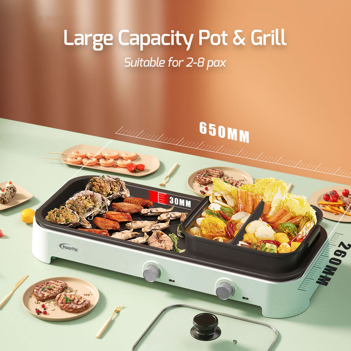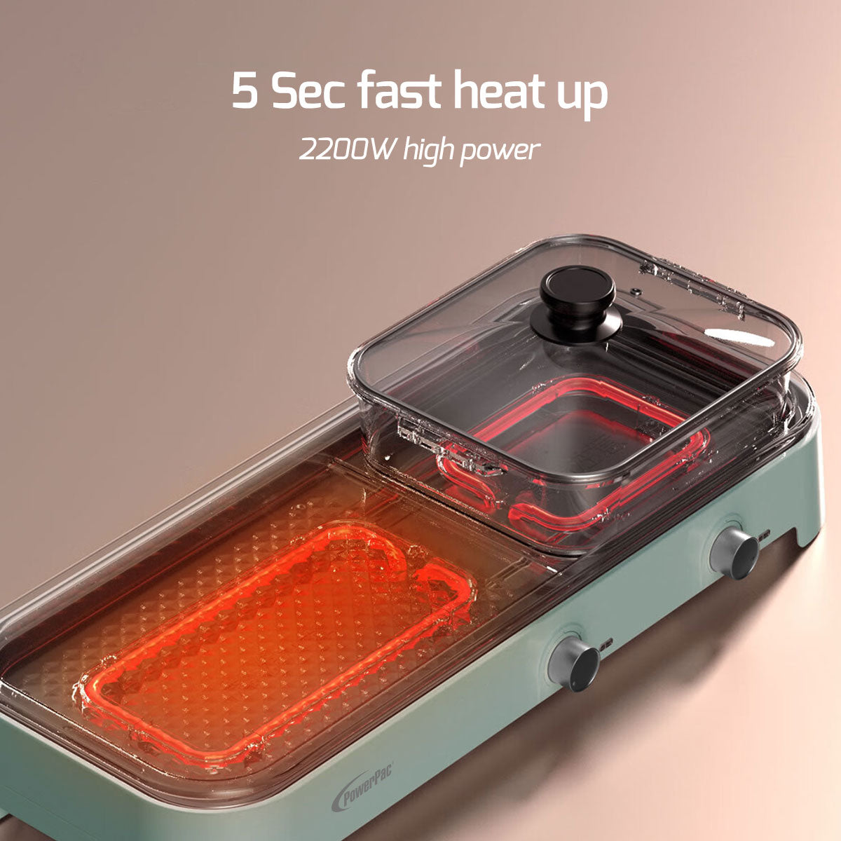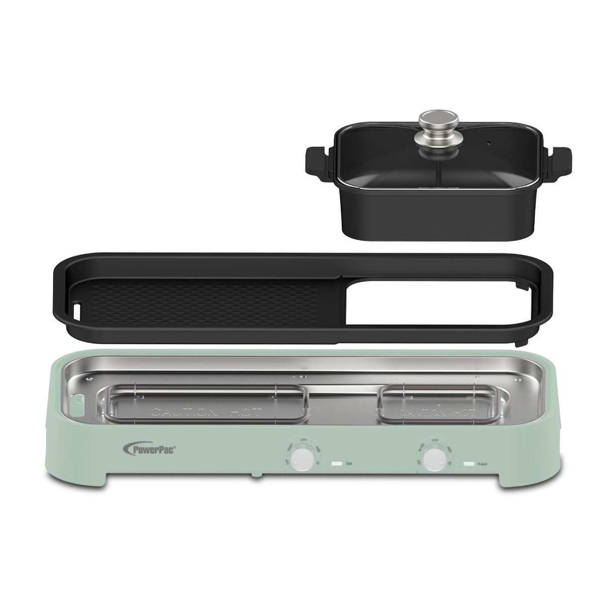 The PowerPac Steamboat with BBQ Grill, 2 in 1 Multi-Cooker YuanYang pot PPMC797 carries out the cooking functions of many appliances all within one versatile and time-saving tabletop electric appliance, freeing up your modern kitchen's already limited space.