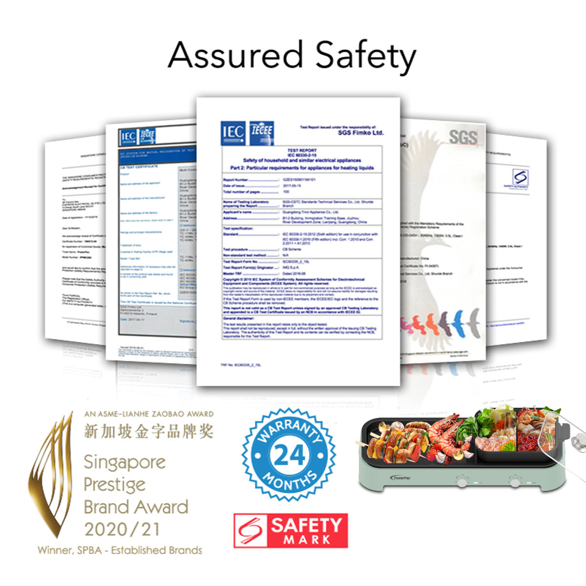 The PowerPac Steamboat with BBQ Grill, Multi-Cooker PPMC797 is light, easy to handle, attractively-designed, uses less electricity due to its high energy efficiency and serves to ensure your food is safe for consumption for many years to come.