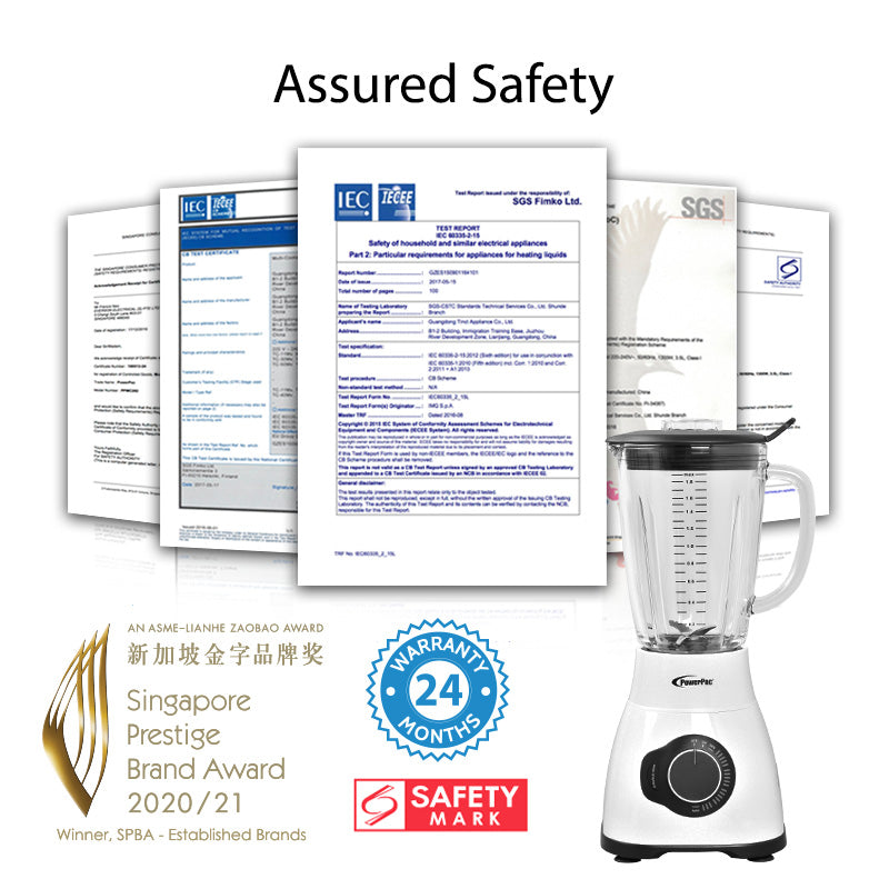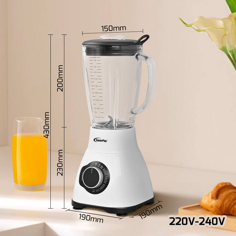 The PowerPac Professional High Power Blender with Glass Jug 1200W PPBL800 is a professional level appliance, suitable for Cooking Shows, and its superb performance demonstrates this. It will certainly demand and take pride of place in your kitchen. Yet, it remains an energy efficient, safe and easy-to-use kitchen appliance which will make blending safe and convenient for everyone in the family.
