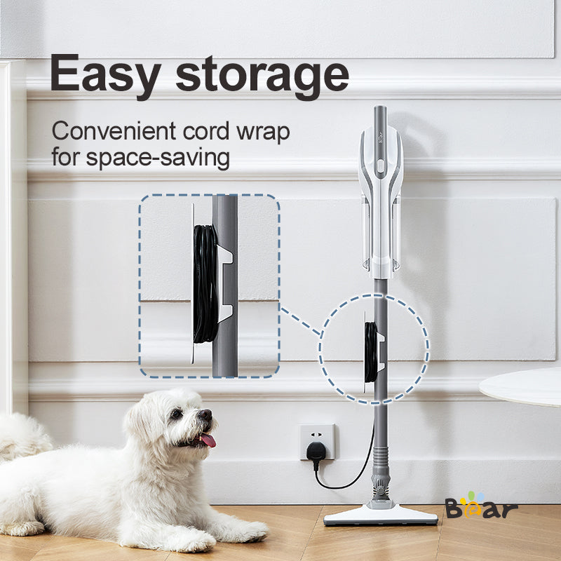 The Bear Stick Vacuum Cleaner XCQ-P06J5 is lightweight at only 1.7 kg. This makes it easy to manoeuvre, especially for cleaning ceilings or top of curtains, and makes it portable, if you need to use it at various places. With an ergonomic handle design and a single Power Switch, it offers a 5 foot reach and a 5 metre long power cable. No need for plugging and unplugging every time you move to a different section.