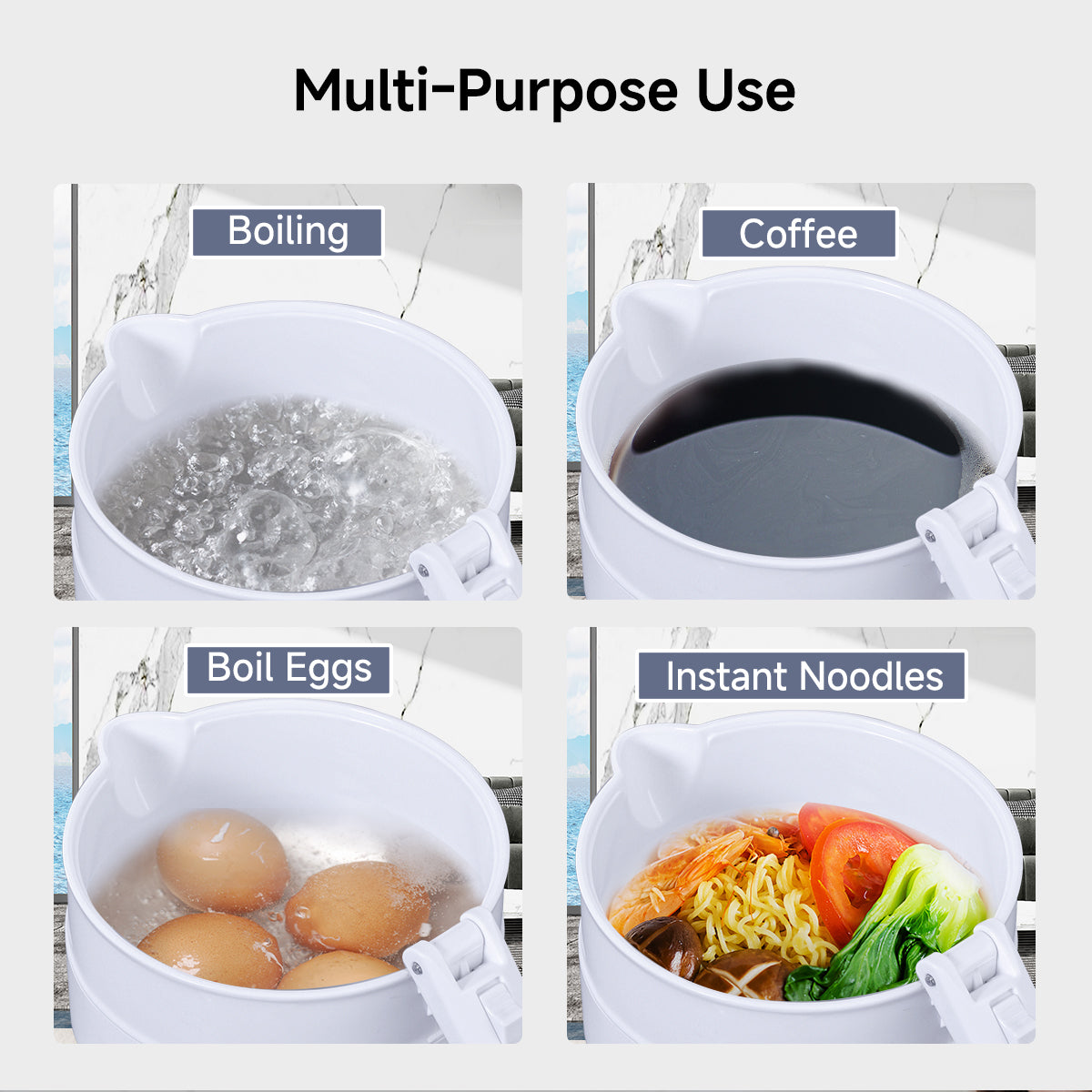 With a boiling duration of less than 5 minutes, it is perfect for those with no time to waste. After boiling, the sensitive Thermostat allows water to be kept at a specific warm temperature. It also allows water to be heated to a specific temperature and then maintained at that same temperature, without boiling. Safety features include Dry-boil prevention with auto-cut off.