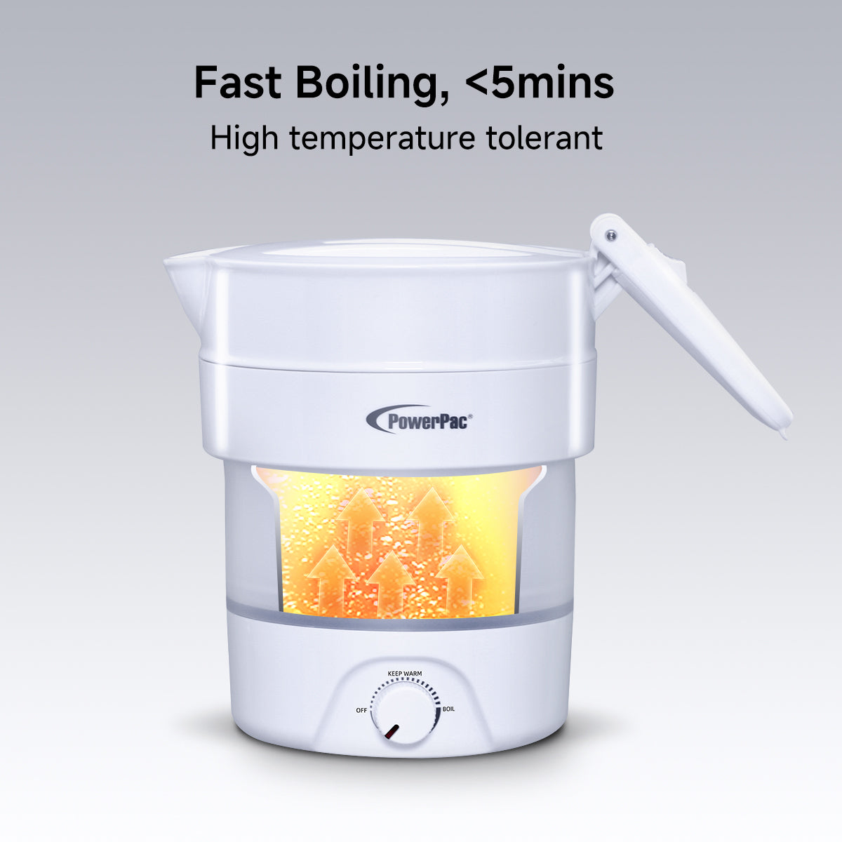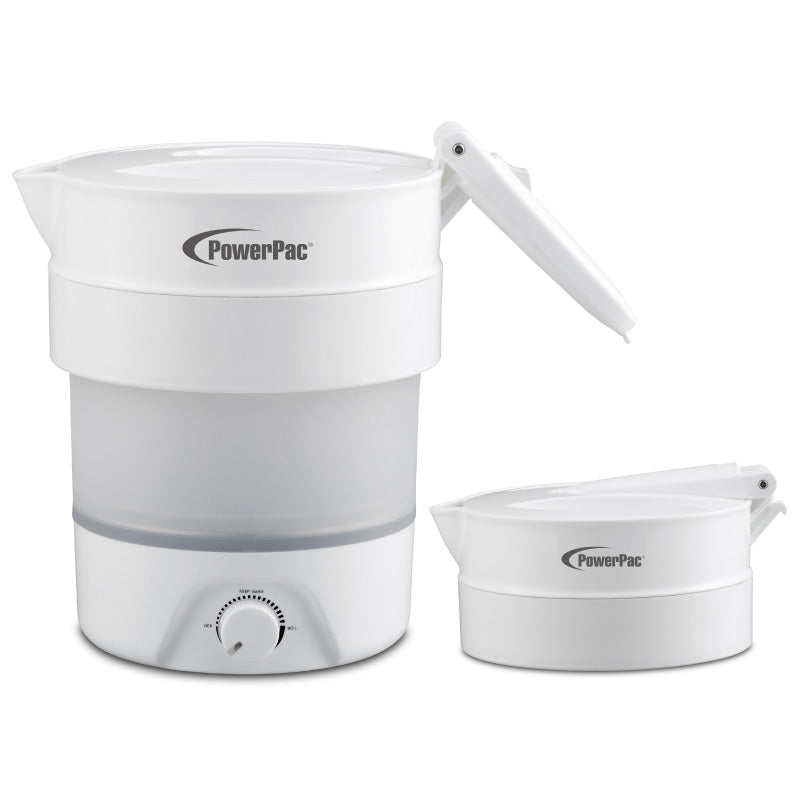 Introducing the PowerPac Foldable Electric Travel Kettle 0.8L PPJ2027, a useful appliance which you can take along whenever and wherever you travel. The steps required to fold and unfold the kettle are very simple, utilises a pull-tab design and takes less than 2 seconds to fold or unfold. When folded, it is very compact and lightweight; folding from 18 cm to 8 cm! Thus you could put it inside your luggage with nary a care whether your luggage has enough space or would be over-weight.
