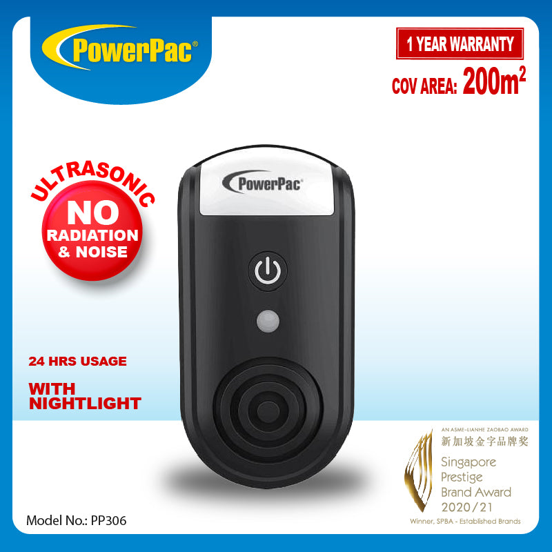 The PowerPac Ultrasonic Insect Power Strike Pest Repellent PP306 attracts flying insects such as flies, ants & mosquitoes. It is equipped with 3 ultrasonic wave, which drives them away with a range of 200 m2.