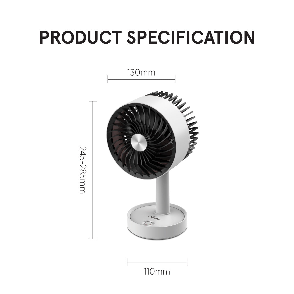 5" Table Fan – USB, Rechargeable, Portable Wireless, Adjustable Tilt, LED lights, Sturdy, 3-Speed, white, PPUF230