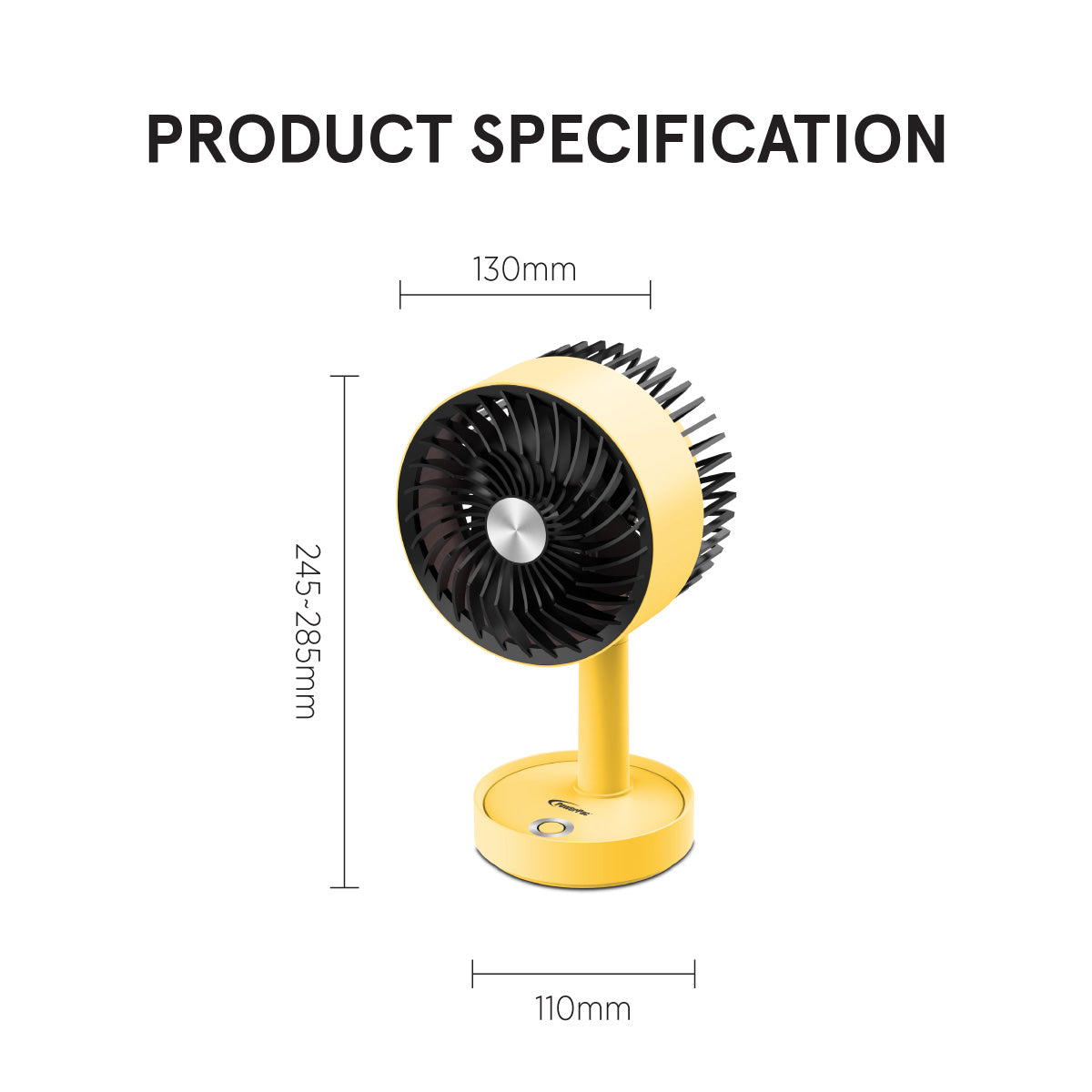 5" Table Fan – USB, Rechargeable, Portable Wireless, Adjustable Tilt, LED lights, Sturdy, 3-Speed, yellow, PPUF230